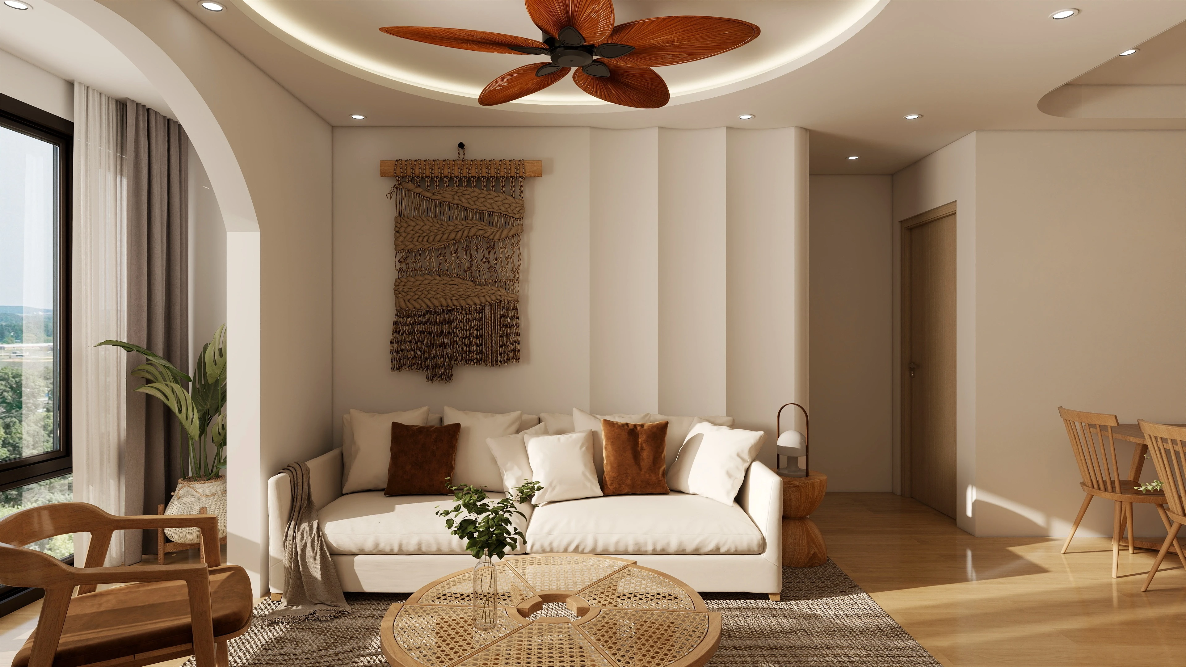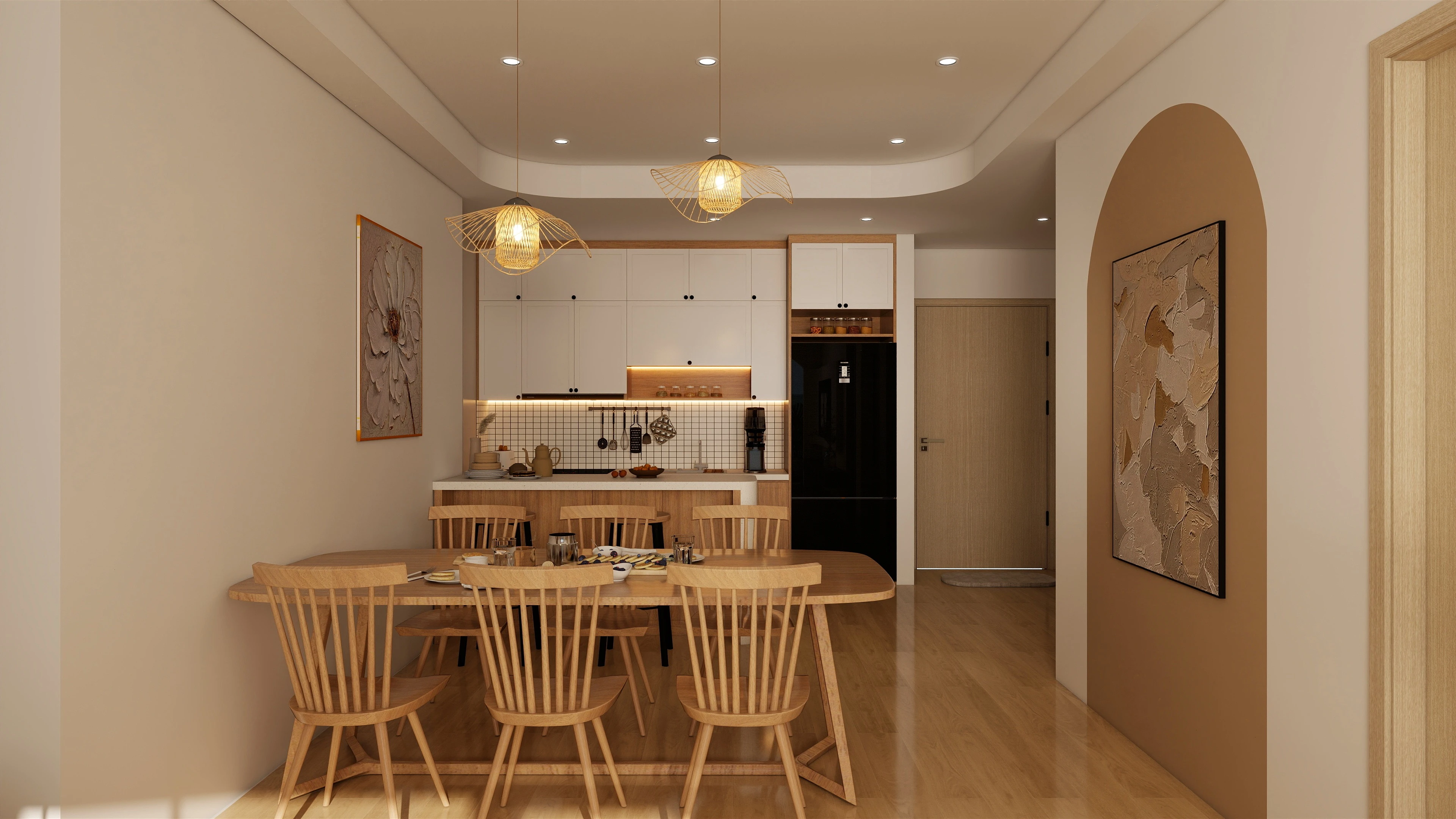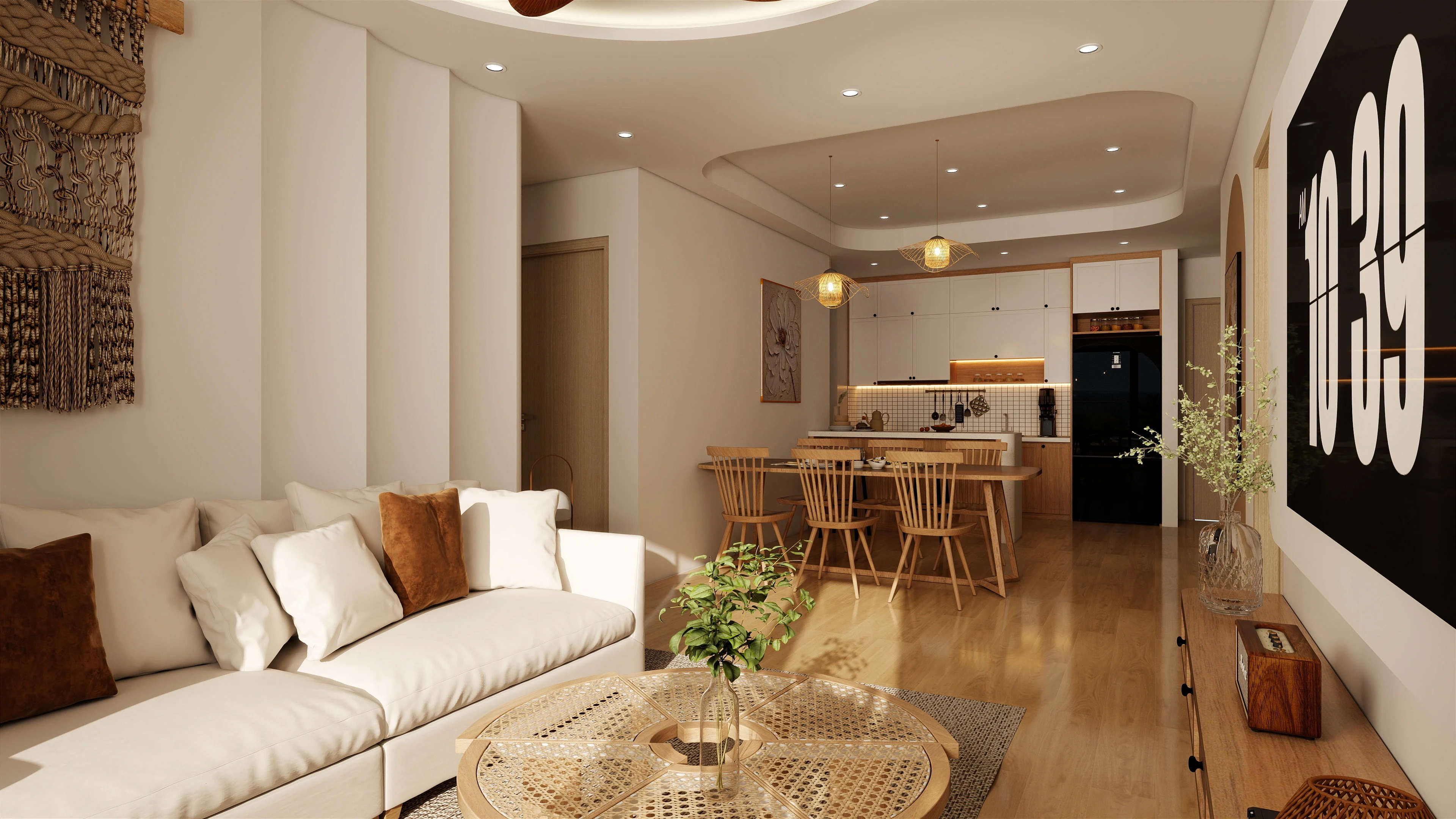 Phòng khách là nơi đầu tiên lưu giữ những ấn tượng về tổ ấm – và trong thiết kế này, MKL Interior đã tinh tế lồng ghép ngôn ngữ của đường cong mềm mại cùng bảng màu gỗ ấm để tạo nên một không gian hài hòa, tối giản nhưng đầy cuốn hút.