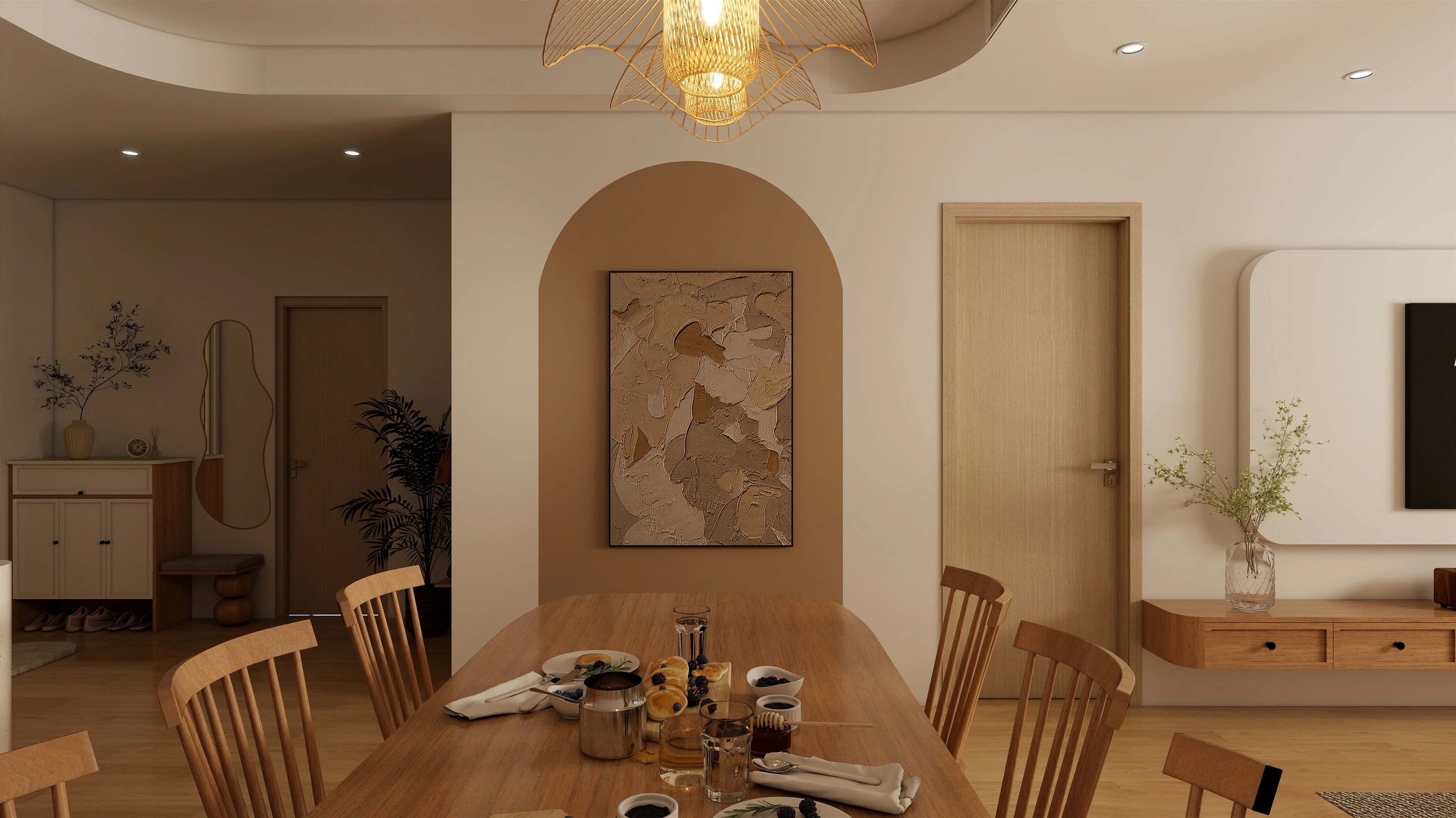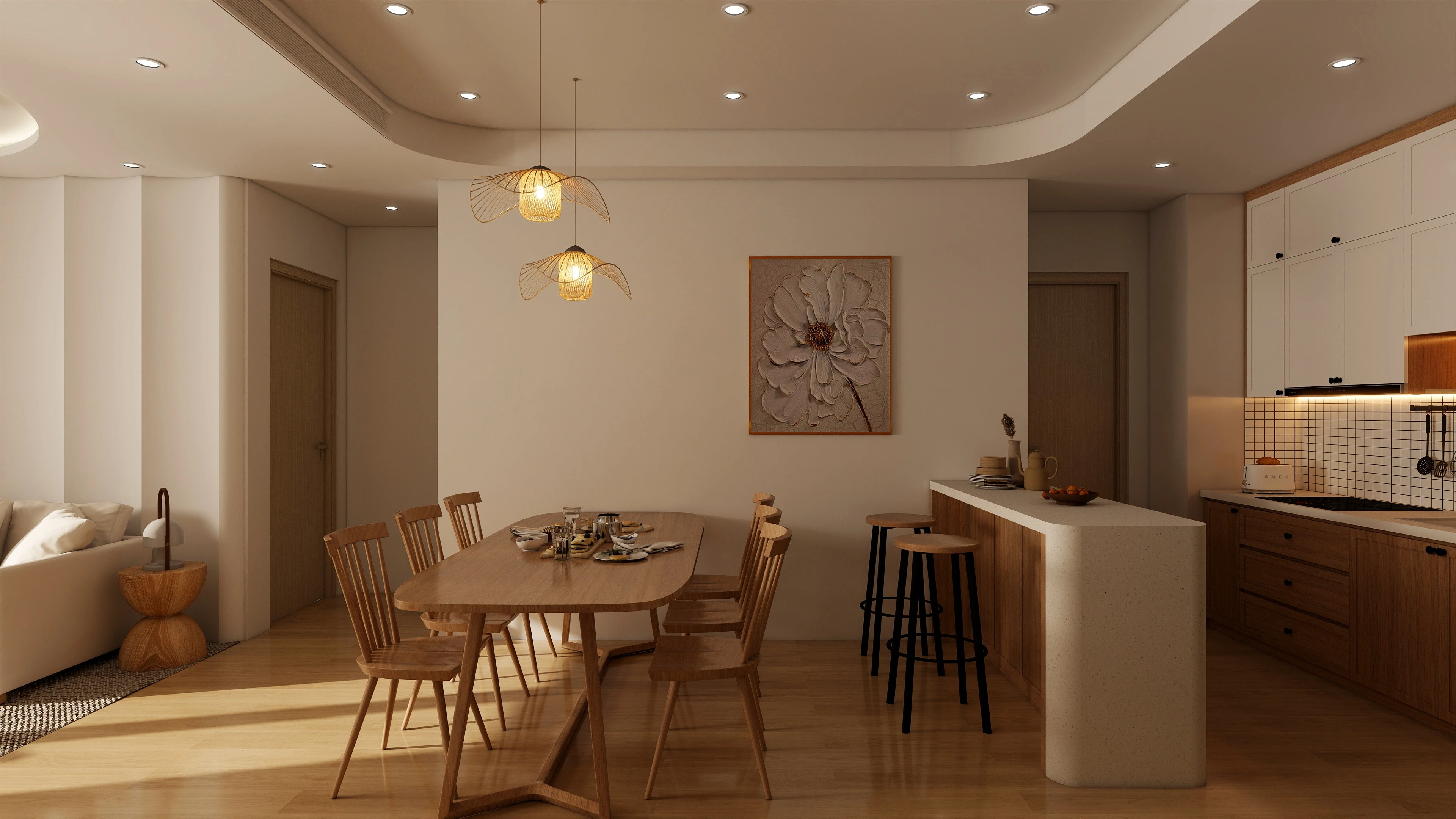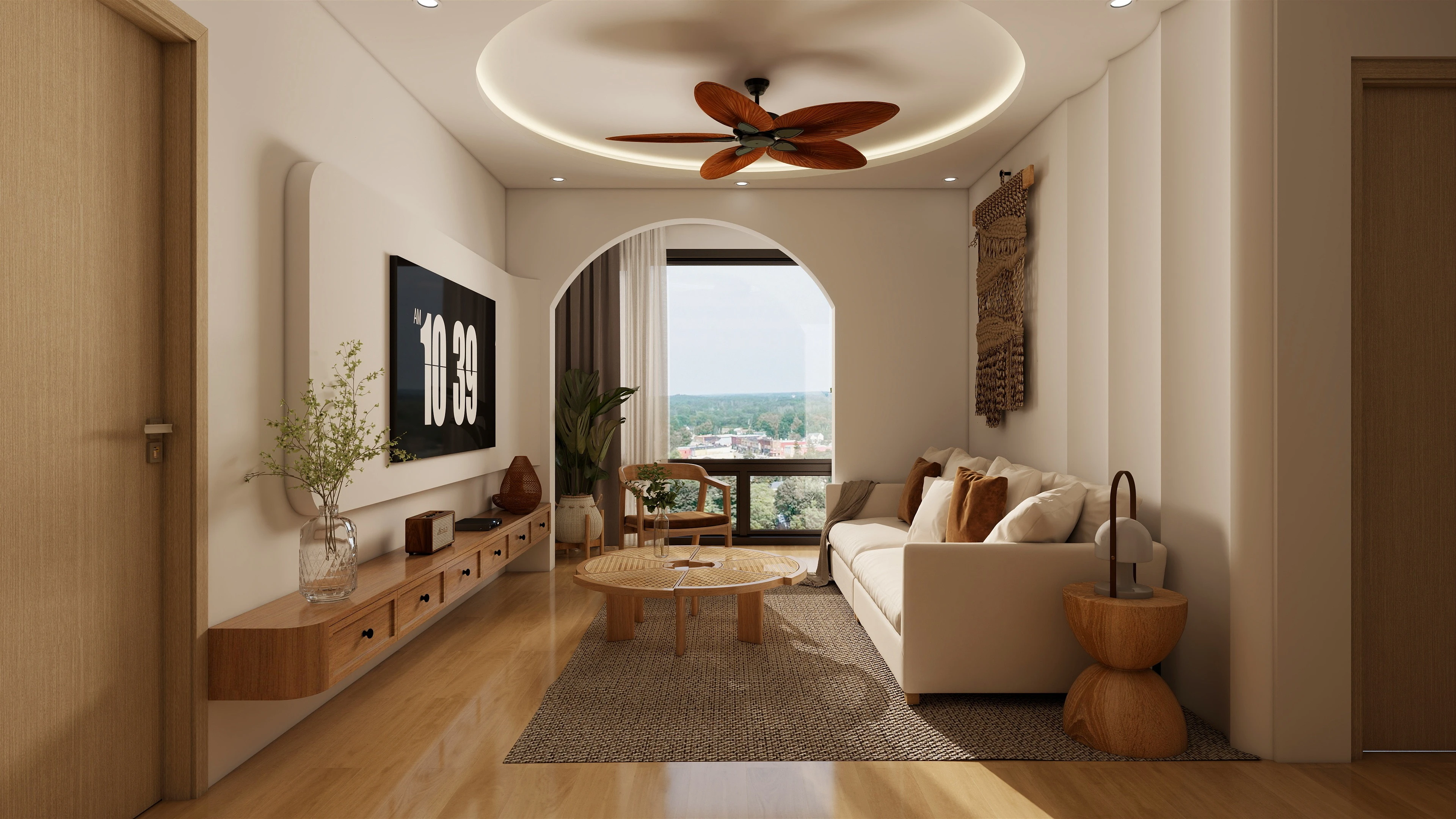 Phòng khách là nơi đầu tiên lưu giữ những ấn tượng về tổ ấm – và trong thiết kế này, MKL Interior đã tinh tế lồng ghép ngôn ngữ của đường cong mềm mại cùng bảng màu gỗ ấm để tạo nên một không gian hài hòa, tối giản nhưng đầy cuốn hút.