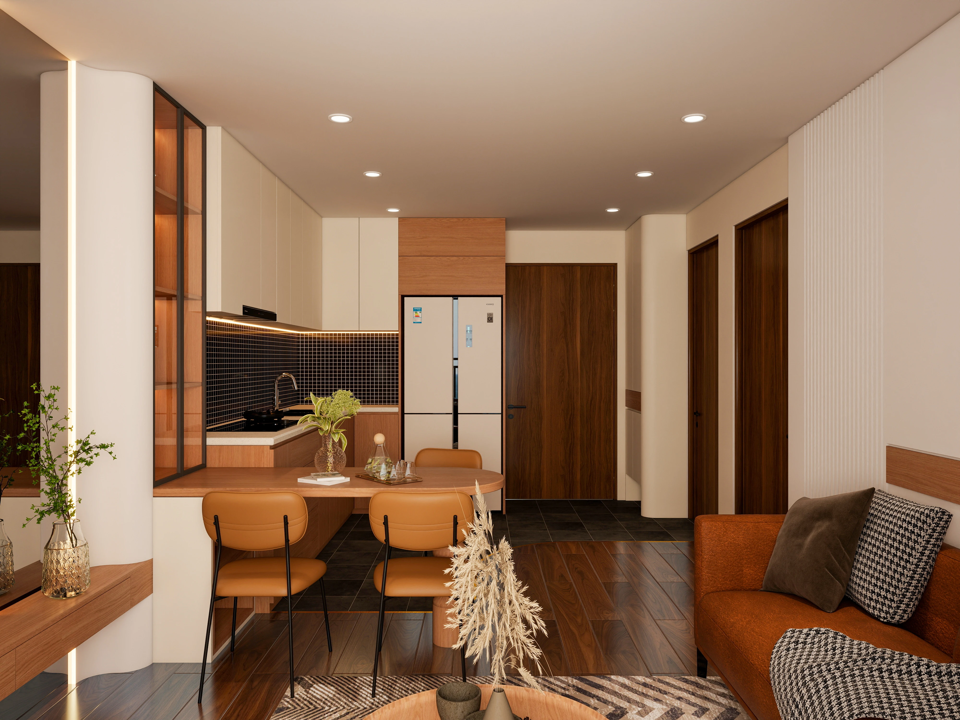 Lấy cảm hứng từ phong cách Japandi – sự kết hợp giữa tinh thần Nhật Bản tối giản và ấm áp từ chất liệu Bắc Âu, không gian sống trong căn hộ này mang đến một cảm giác an yên và thanh lịch giữa lòng phố thị.