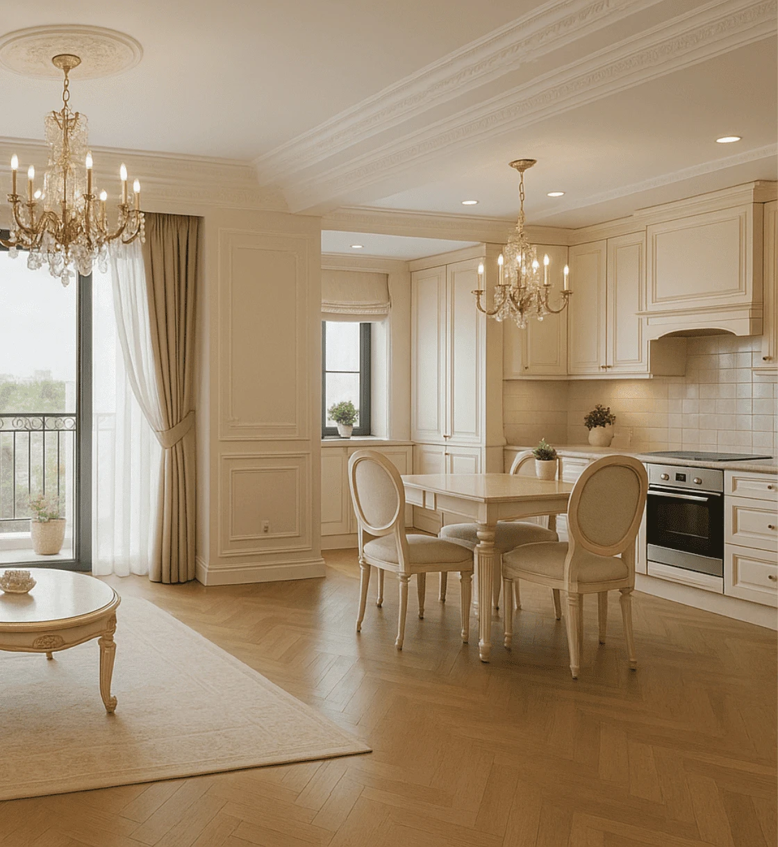 🪟 Không Gian Mở – Cổ Điển Nhưng Không Cứng Nhắc