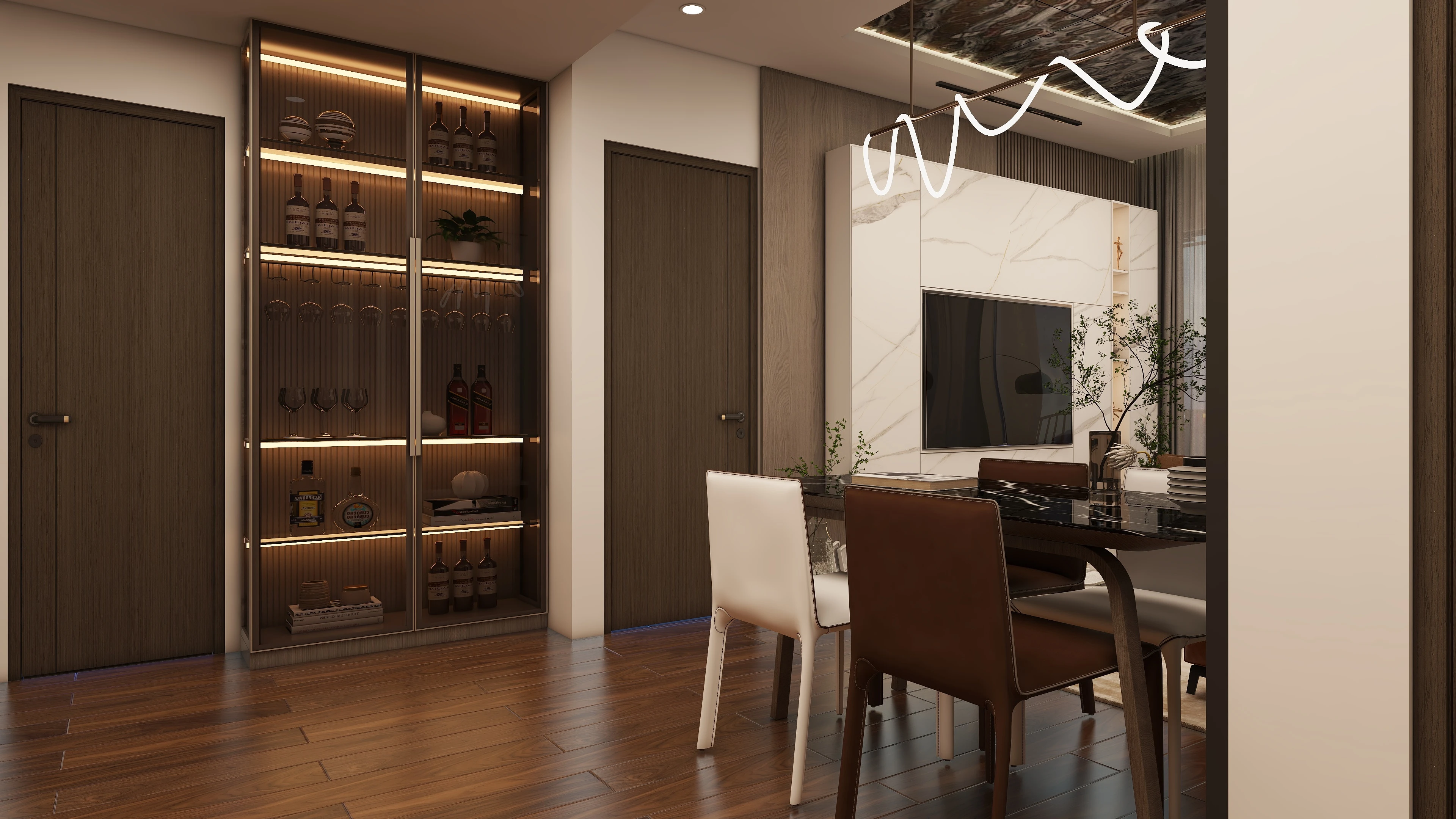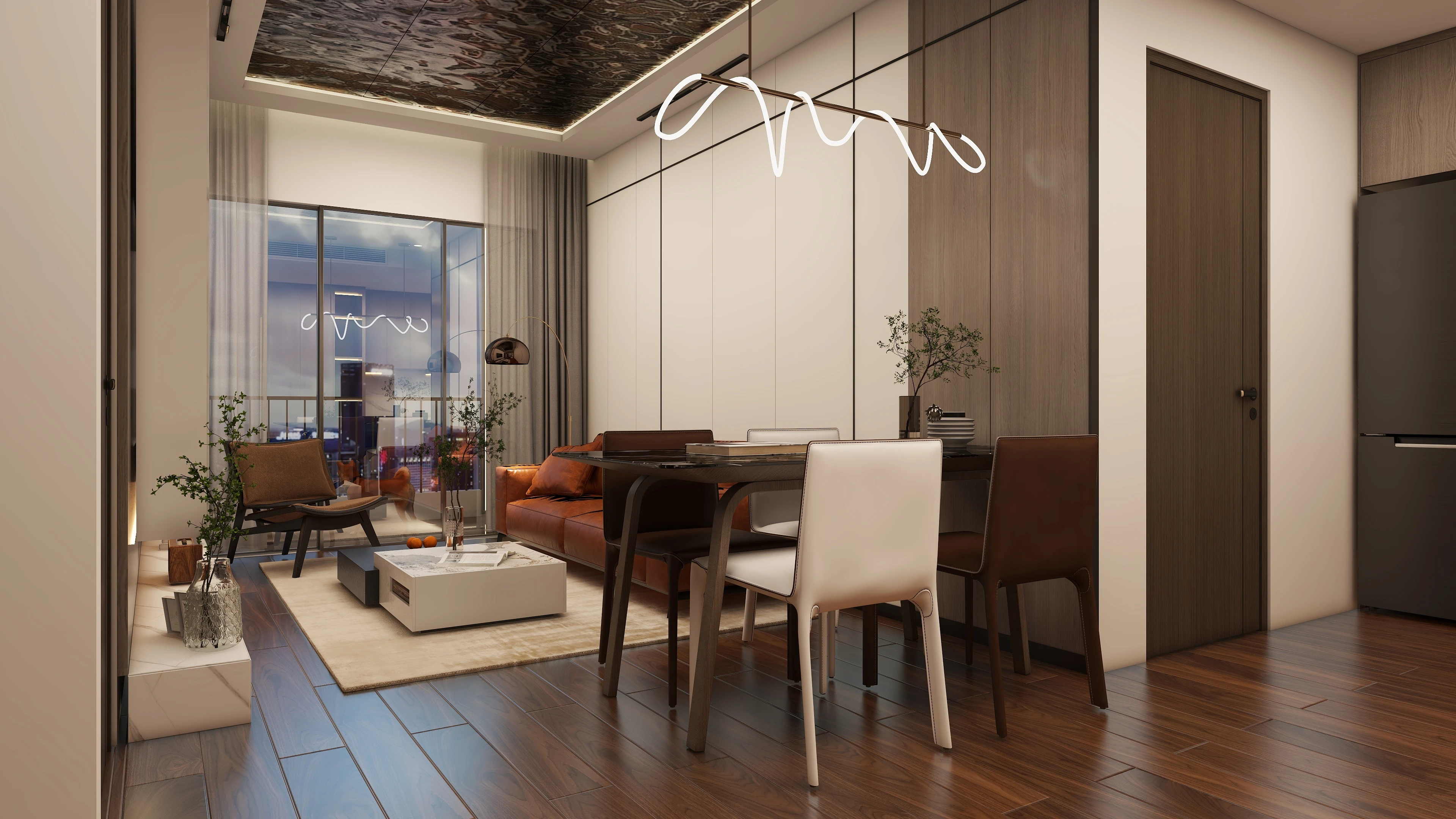 Thiết kế căn hộ với layout phòng khách liên thông phòng ăn đang là xu hướng được ưa chuộng nhờ tính tối ưu không gian và sự liền mạch trong thẩm mỹ. Mẫu thiết kế dưới đây từ MKL Interior là minh chứng hoàn hảo cho xu hướng đó.