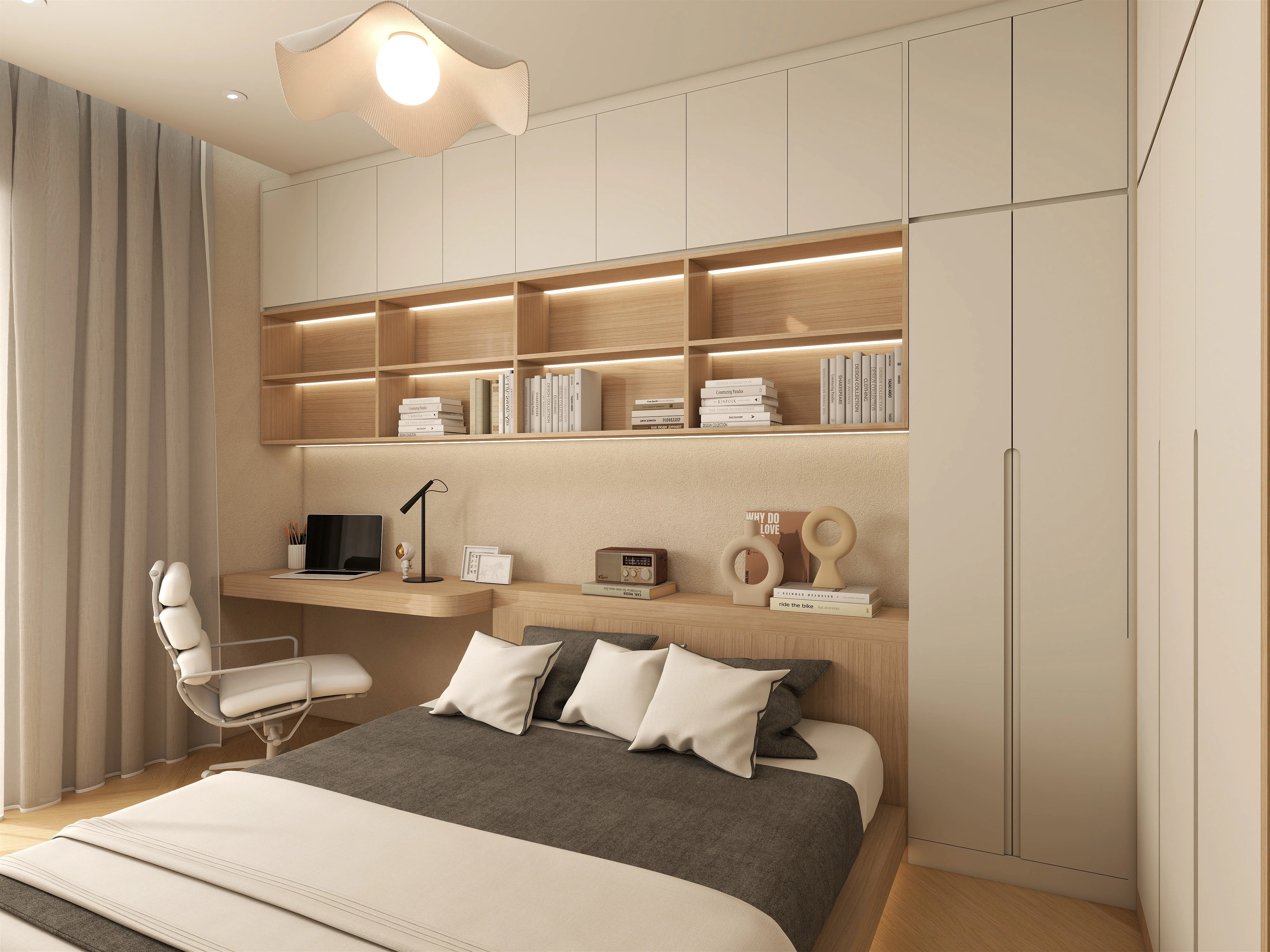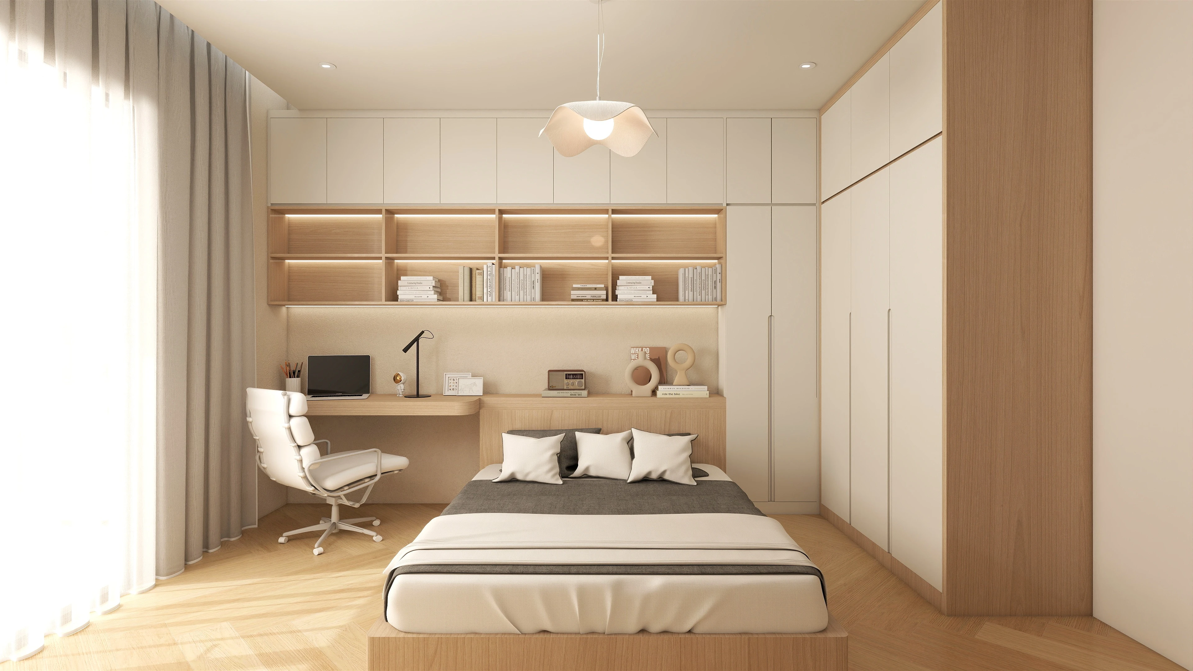 Không gian phòng ngủ không chỉ là nơi nghỉ ngơi, mà còn là nơi khơi gợi cảm hứng sống và làm việc. Với thiết kế hiện đại pha chút tối giản, MKL Interior mang đến một không gian nhẹ nhàng, thư thái – nơi mọi cảm xúc đều được chăm sóc một cách tinh tế.